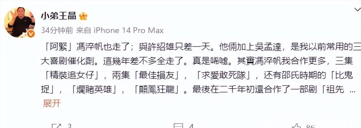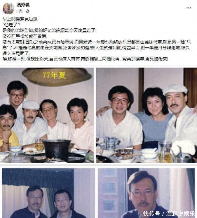 一语成谶!冯淬帆走了。10日,他在社交平台发文悼念港星许绍雄。 那句“贤弟那边等,愚兄随后来”,当时看似玩笑。谁承想,三天后——这句话成了他留给世界的最后遗言。